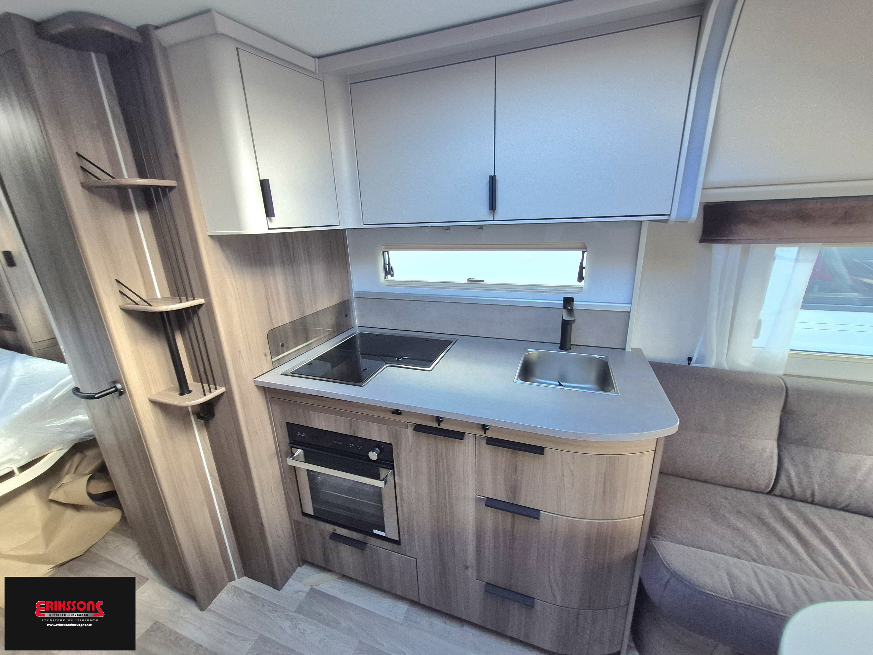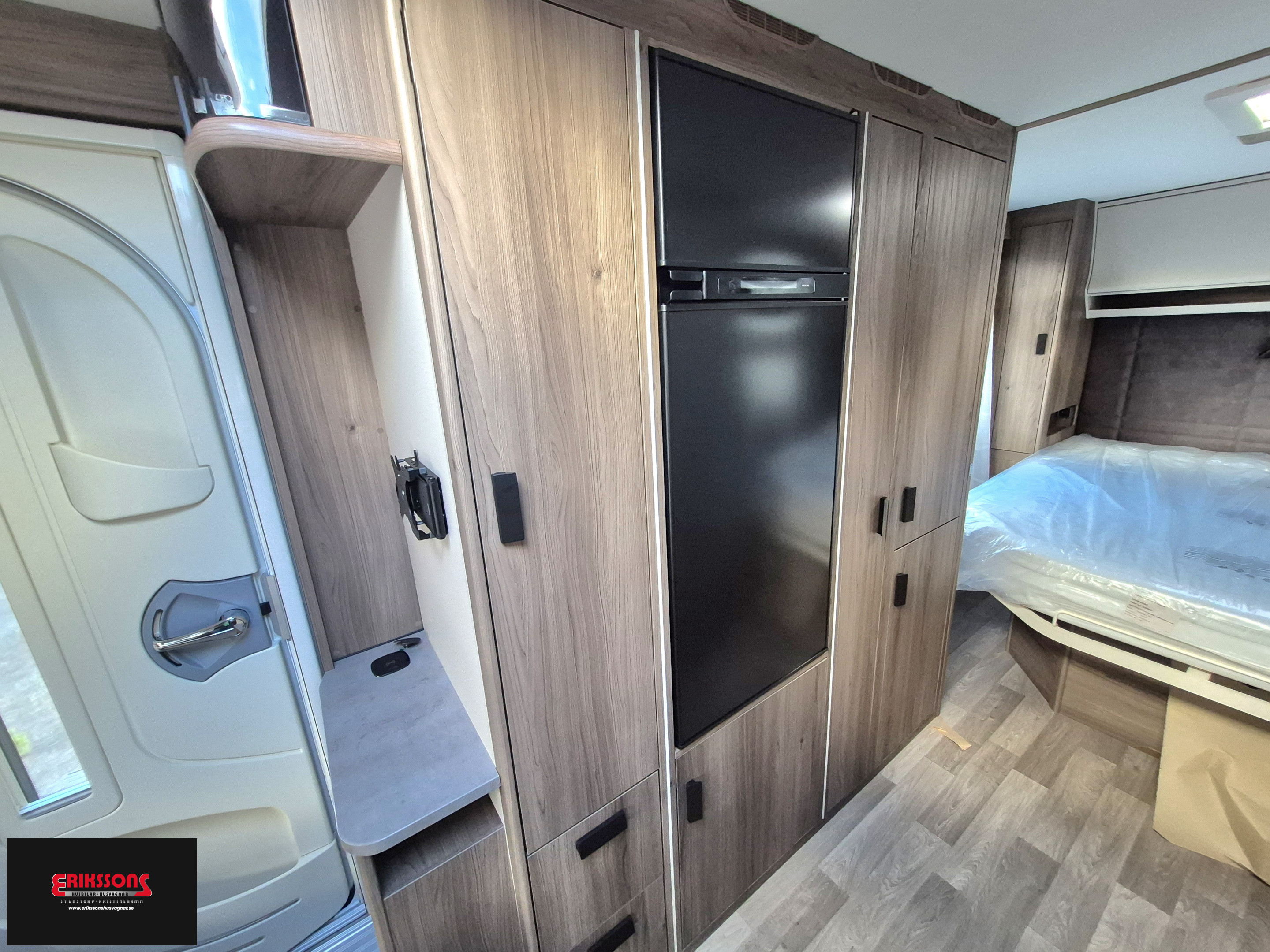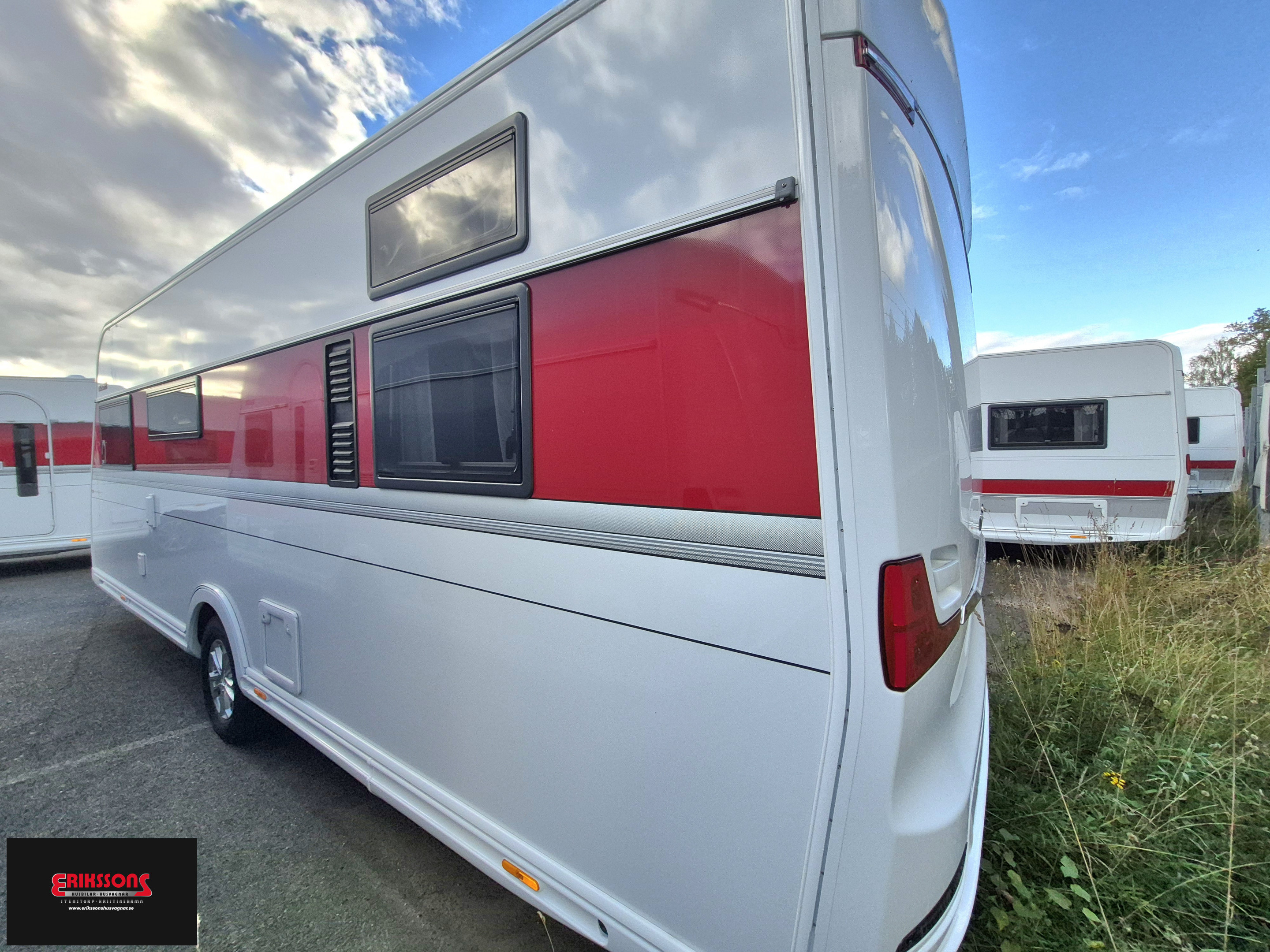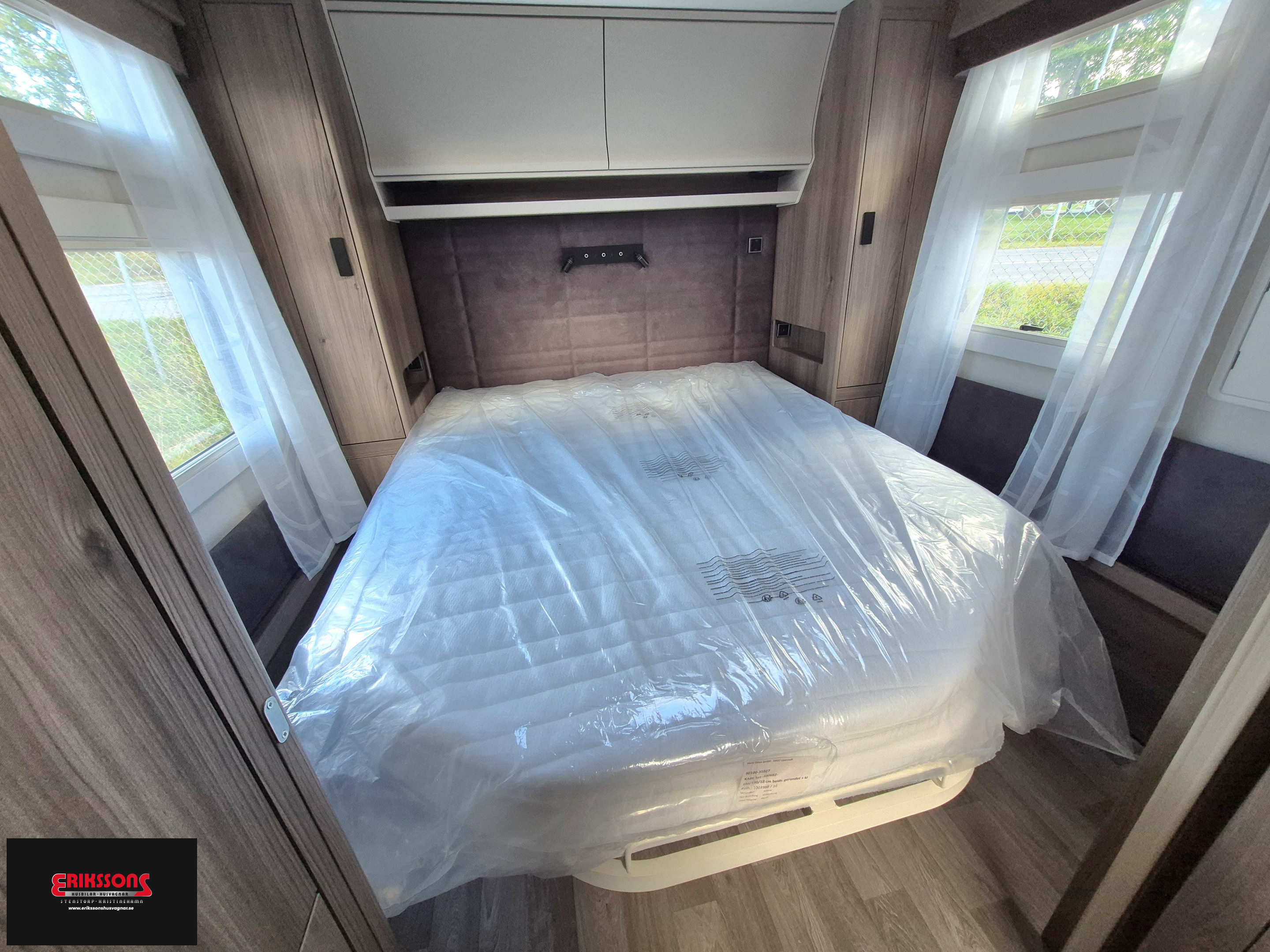 15" alufälg, AL-KO helgalvaniserat stålprofilchassi med självjusterande bromsar, Däck Continental, Ecoprim-isolering 36 mm, Elektroniskt stabiliseringssystem ATC, Fönster i ytterdörr, Ljuslist hela dörrväggen, Mellantonade fönster med steglöst myggnät och mörkläggningsgardin, Mjukt innertak, Myggnätsdörr, Plastreglar, Påskjutsbroms med backautomatik, Sandwichkonstruktion, Ventilerande väggtapet, Alde Compact 3030 centralvärme, Automatiskt vattenburet golvvärmesystem - 4 slingor och shuntsystem (AGS II Pro), Belastningsvakt som automatiskt minskar / kopplar bort pannans strömförbrukning, Anslutning för utvändig dusch / varmt och kallt vatten, Köksfläkt, Spillvattentank 32 liter, Spis med elektrisk tändning, Svarta handtag, Vattentank 40 liter, Spiralmadrass 12 cm + bäddmadrasser 6 cm, Handdukstork, Router, Trådlös laddningsplatta, TV-antenn med förstärkare, TV-fäste, Centraldammsugare, Utvändig gasolanslutning för grill placerad i gasolkoffert