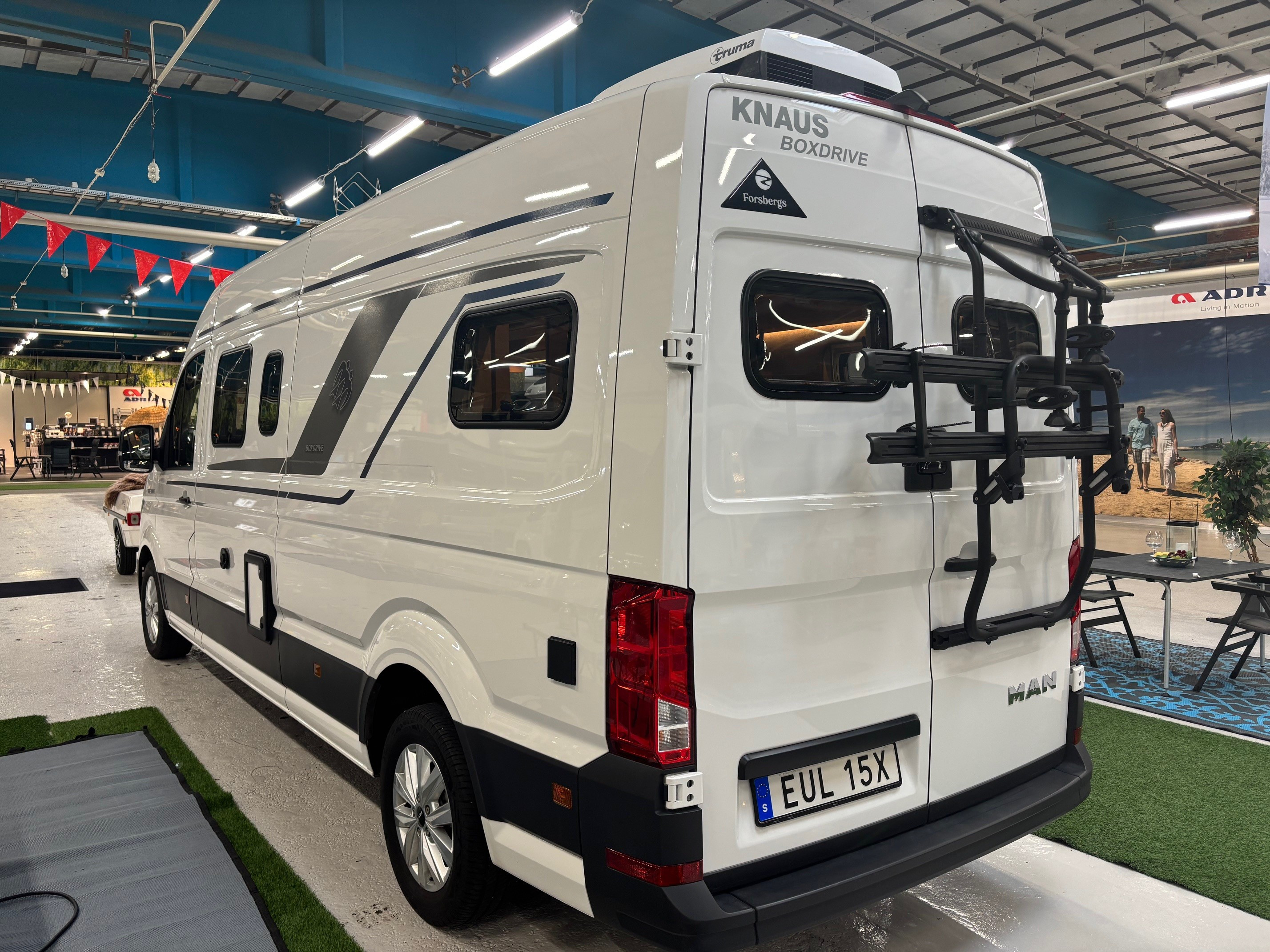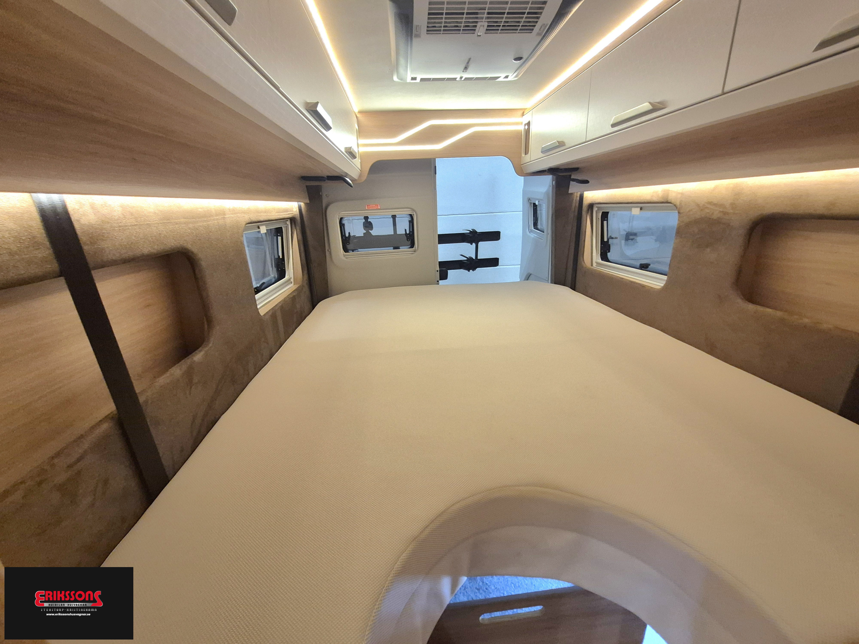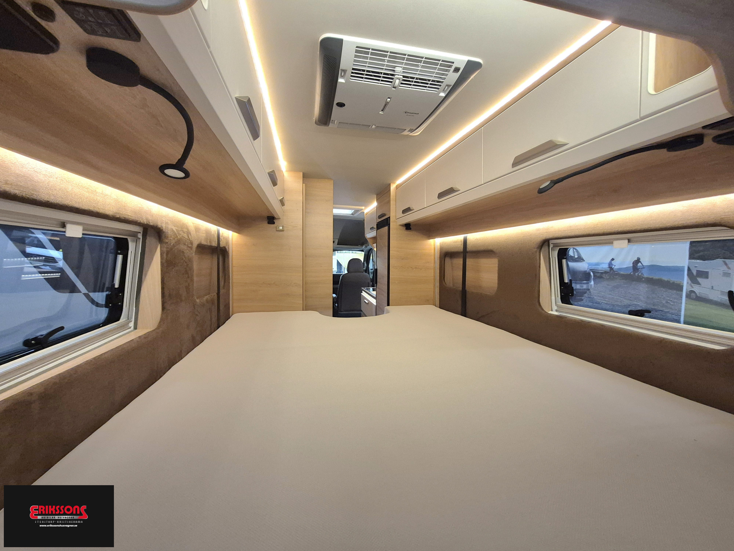 Hydraliska stödben, AC i bodel, Solcell, MAN chassi, Automat 9 steg, Vinterhjul, Skinnklädsel, Tv , Router, Markis, Cykelställ, Luftfjädring, Truma D med elpatron , Multimedia med navigation, Nedfällbar (tak) dubbelsäng bak